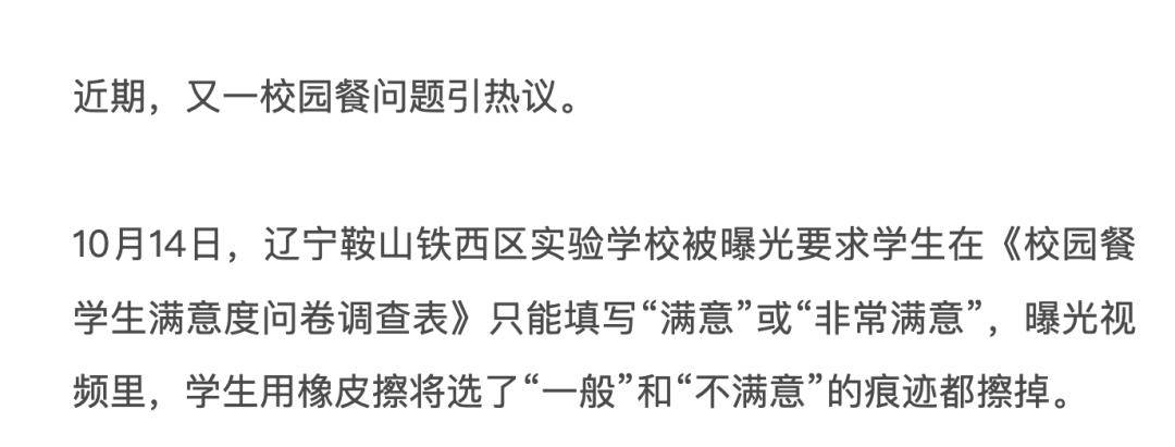 但正在现实中,监视机制并不总能无效运转,加之校园餐市场也具备必然的封锁性,所以也一直有令人担心的食物平安旧事传出。