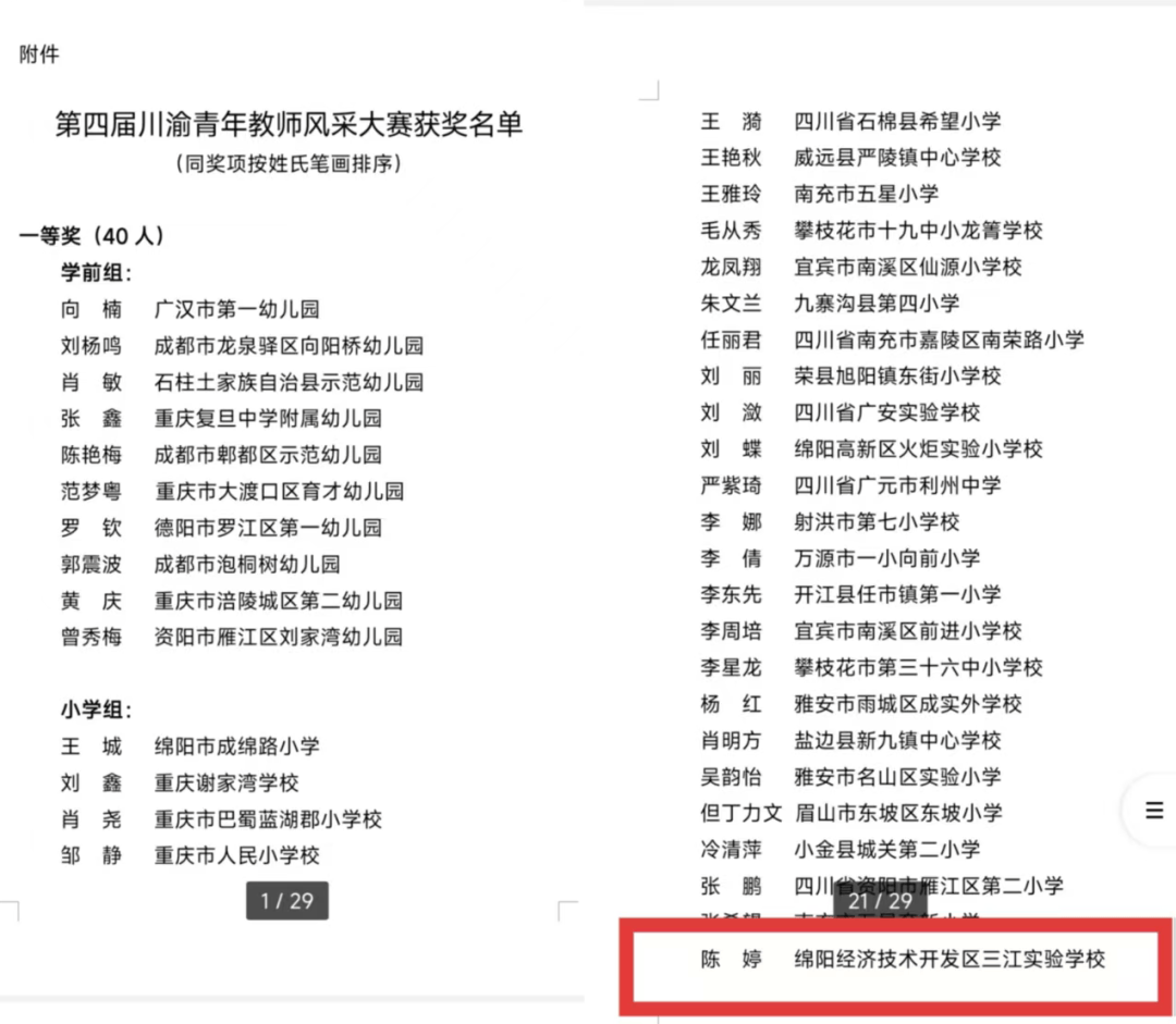 正在2025年揭晓的2024年四川省中小学生学业质量评价原创试题搜集评选勾当中,曹婷、王雅兰、马梓瑜、陈汤颖教员荣获初中英语特等奖;何林鲜、付燕、陈凌菲、罗蕾、陈力瑕教员荣获初中语文一等奖;严霞、刘鑫、黄丽芳、吴悦教员荣获初中生物一等奖;黄强、周雁昕、王燕凌教员荣获初中物理一等奖;屈青梅、李杰轩、杨静、岳兰教员荣获初中地舆一等奖。